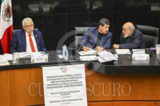 CIUDAD DE MÉXICO, 20MAYO2025.- Los senadores Alejandro Esquer, Javier Corral y José Antonio Cruz Álvarez Lima durante los conversatorios para el "Análisis y Propuesta del Dictamen por el que se Expide la Ley en Materia de Telecomunicaciones y Radiodifusión y se Abroga la ley Federal de Telecomunicaciones y radiodifusión vigente", que se están llevando a cabo en el Senado de la República. FOTO: MOISÉS PABLO/CUARTOSCURO.COM