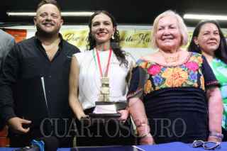 CIUDAD DE MÉXICO. 20MAYO2025.- La directora de Canal 11, Renata Turrent, recibió el galardón de la Asociación de Locutores de la República Mexicana; por su apertura a las mesas de análisis así como una amplia programación de este canal del Estado. La acompaño Rodrigo de la Cadena. FOTO: VICTORIA VALTIERRA/CUARTOSCURO.COM
