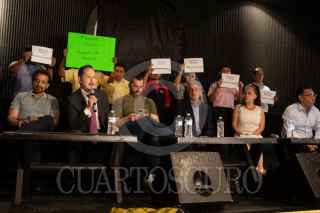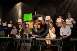 CIUDAD DE MÉXICO, 22MAYO2025.- Gerardo López Becerra, desarrollo pequeño Comercio durante conferencia de prensa para hablar sobre los daños que el plantón de la CNTE que lleva desde el 15 de mayo a generado a los negocios del primer cuadrante de Centro Histórico calculando una pérdida declararon ellos de millones de pesos. FOTO: ANDREA MURCIA /CUARTOSCURO.COM