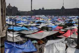 CIUDAD DE MÉXICO, 22MAYO2025.- Este jueves se cumplió una semana del plantón de los integrantes de la Coordinadora Nacional de Trabajadores de la Educación (CNTE) en la plancha del Zócalo, los maestros esperan reunirse con la presidenta de México este viernes. FOTO: DANIEL AUGUSTO/ CUARTOSCURO.COM