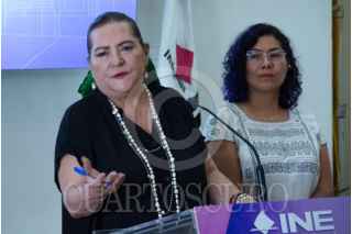 CIUDAD DE MÉXICO, 22MAYO2025.- Guadalupe Taddei Zavala, consejera presidenta, acompañada de Norma Irene de la Cruz Magaña, consejera electoral, durante una conferencia de prensa en el Instituto Nacional Electoral. FOTO: GRACIELA LÓPEZ/CUARTOSCURO.COM