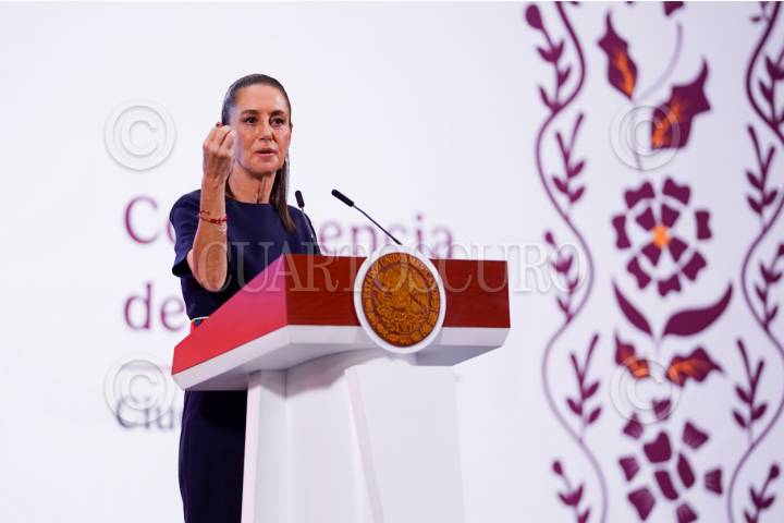 CIUDAD DE MÉXICO, 23MAYO2025.- Claudia Sheinbaum, presidenta de México, encabezó la conferencia "Mañanera del Pueblo" desde Palacio Nacional en dónde se expusieron los temas de la recuperación del Parque Bicentenario por parte de la Secretaria de Cultura y sobre los pagos que deberá hacer el exsecretario de Seguridad en el gobierno de Felipe Calderón, Genaro García Luna, tras ser declarado culpable en Estados Unidos. FOTO: GALO CAÑAS/CUARTOSCURO.COM
