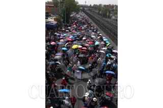 CIUDAD DE MÉXICO 23MAYO2025.- Integrantes de la Coordinadora Nacional de Trabajadores de la Educación (CNTE), se manifestaron a las afueras del Aeropuerto Internacional de la Ciudad de México, esto como parte de su jornada de protesta en la capital para presionar al gobierno el cumplimiento de su pliego petitorio. Entre sus demandas exigen un aumento nacional del 100 por ciento y derogación de la Ley del ISSSTE. FOTO: ROGELIO MORALES CUARTOSCURO.COM
