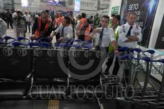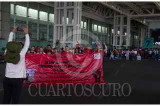 CIUDAD DE MÉXICO 23MAYO2025.- Integrantes de la Coordinadora Nacional de Trabajadores de la Educación, ireumpieron la Terminal 2 del Aeropuerto Internacional de la Ciudad de México. FOTO:ROGELIO MORALES/CUARTOSCURO.COM
