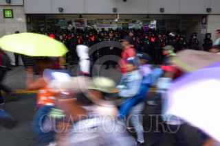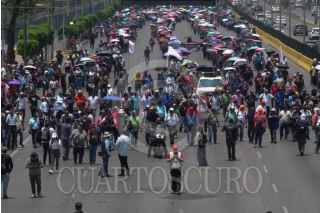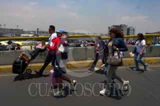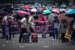 CIUDAD DE MÉXICO 23MAYO2025.- Integrantes de la Coordinadora Nacional de Trabajadores de la Educación (CNTE), bloquearon los accesos de la Terminal 1 y 2 del Aeropuerto Internacional de la Ciudad de México, esto como parte de su jornada de protesta en la capital para presionar al gobierno el cumplimiento de su pliego petitorio. FOTO: ROGELIO MORALES CUARTOSCURO.COM