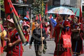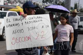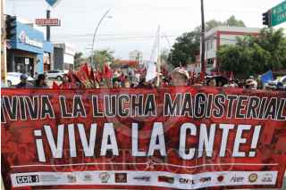 OAXACA DE JUÁREZ, OAXACA, 23MAYO2025.- Integrantes de organizaciones sociales marcharon en la capital de Oaxaca en apoyo a la Sección 22 de la Coordinadora Nacional de Trabajadores de la Educación (CNTE) que inició un paro de labores del pasado 15 de mayo. Durante la manifestación, criticaron el trato que le ha dado la presidenta de la República, Claudia Sheinbaum a la CNTE. En el estado más de 800 mil alumnos de educación básica han permanecido sin clases. FOTO: CAROLINA JIMÉNEZ/CUARTOSCURO.COM