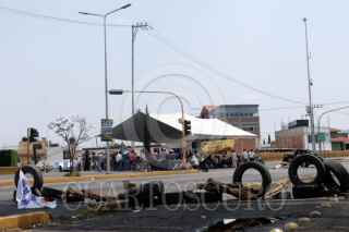PUEBLA, PUEBLA, 23MAYO2025.- Integrantes de los Pueblos Originarios mantienen plantón en la carretera Federal a Atlixco. La protesta, que suma más de 24 horas, es en rechazo al presunto despojo de tierras atribuidas al grupo Proyecta y otras inmobiliarias, a quienes acusan de violar sus derechos territoriales sin consulta ni consentimiento previo. FOTO: MIREYA NOVO/ CUARTOSCURO.