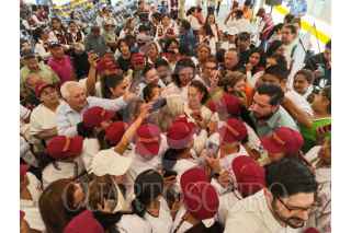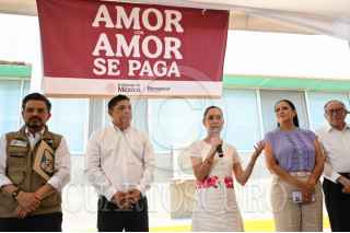 SAN LUIS POTOSÍ, SAN LUIS POTOSÍ, 24MAYO2025.- Zoé Robledo, titular del IMSS; Ricardo Gallardo, gobernador de San Luis Potosí; Claudia Sheinbaum, presidenta de México; Ariadna Montiel, secretaria de Bienestar, y David Kershenobich, secretario de Salud, durante el arranque del programa Salud Casa por Casa desde la entidad que busca beneficiar a la población de adultos mayores y a quienes padecen alguna discapacidad. FOTO: PRESIDENCIA/CUARTOSCURO.COM