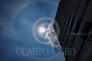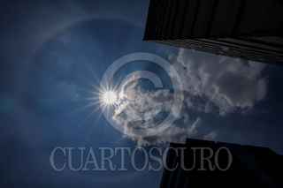 CIUDAD DE MÉXICO, 24MAYO2025.- Un halo solar (fenómeno causado por partículas de hielo en suspensión en la troposfera que refractan la luz generando un espectro de colores alrededor del Sol) fue apreciado desde diversos puntos de la capital del país. FOTO: GALO CAÑAS/CUARTOSCURO.COM