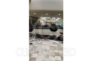 CIUDAD DE MÉXICO, 24MAYO2025.- Un automóvil conducido por una mujer de 61 años cayó desde un tercer nivel del estacionamiento al interior de la Plaza Lilas, en la alcaldía Miguel Hidalgo. La mujer fue trasladada a un hospital privado para su atención. FOTO: ROGELIO MORALES/CUARTOSCURO.COM