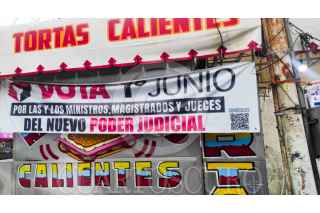 CIUDAD DE MÉXICO. 24MAYO2025.- Regresan los rótulos en los puestos de comida en la alcaldía Cuauhtémoc y así también la invitación. La ciudadanía que esté próximo 1 de junio se vote por magistrados, jueces y ministros del Poder Judicial. FOTO: VICTORIA VALTIERRA/CUARTOSCURO.COM