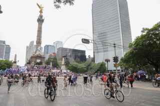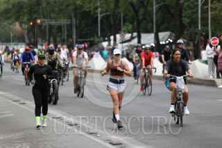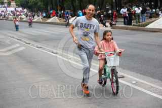 CIUDAD DE MÉXICO, 25MAYO2025.- Ciudadanos corren o andan en bicicleta durante el Paseo Ciclista, el cual como cada domingo se lleva a cabo en Reforma. Padres e hijos se dan cita para realizar actividad física y mantenerse en forma. FOTO: MOISÉS PABLO/CUARTOSCURO.COM