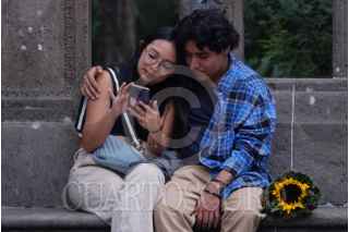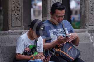 CIUDAD DE MÉXICO, 25MAYO2025.- Un niño acompañado de su padre observan su celular en la Alameda Central. En México pasamos ocho horas diarias en el celular: todo ese tiempo es para TikTok, Instagram, Facebook, jugar y ver series. México es uno de los países que pasa más tiempo frente a la pantalla del celular. FOTO: GRACIELA LÓPEZ/CUARTOSCURO.COM