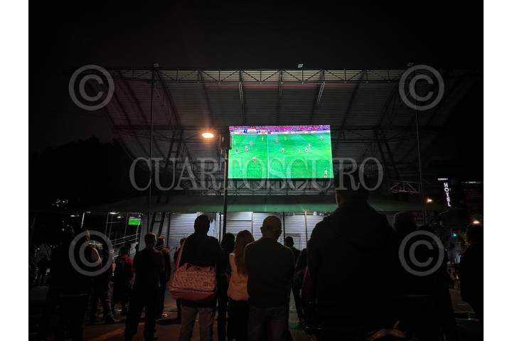CIUDAD DE MÉXICO, 25MAYO2025.- Transeúntes ven el partido de Toluca vs América en la pantalla que se encuentra en la plaza de Pino Suárez. FOTO: ANDREA MURCIA /CUARTOSCURO.COM