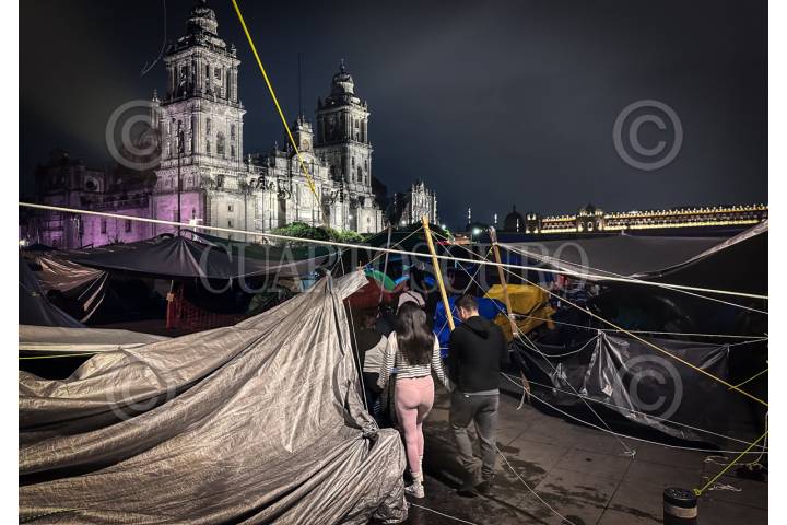 CIUDAD DE MÉXICO, 25MAYO2025.- Este domingo se cumplieron 11 días del plantón instalado en el Zócalo de la Ciudad por maestros integrantes de la Coordinadora Nacional de Trabajadores de la Educación (CNTE). El plantón abarca la planta del Zócalo pero también calles aledañas como parte de la Av. 20 de noviembre y Madero. FOTO: ANDREA MURCIA /CUARTOSCURO.COM