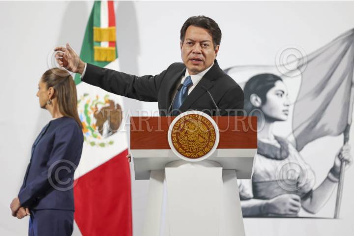 CIUDAD DE MÉXICO, 26MAYO2025.- Claudia Sheinbaum, Presidenta de México, y Mario Delgado, titular de la SEP, hablaron sobre las pensiones de los maestros ya que señalan que a través de la Pensiones del Bienestar se logrará que más de la mitad de los maestros de la federación tengan una pensión similar a su último sueldo, esto tras los 12 días de movilizaciones de la CNTE quienes exigen la derogación de la Ley del ISSSTE DEL 2007. La Jefa del Ejecutiva afirmó el dialogo está abierto y que le aparece raro que los maestros estén amagando con boicotear la eleccion del Poder Judicial. Estás afirmaciones durante la mañana del pueblo en Palacio Nacional. FOTO: MOISES PABLO/CUARTOSCURO.COM
