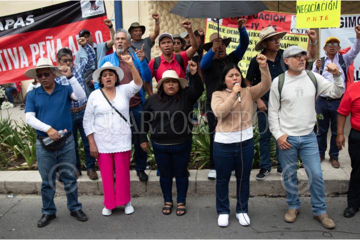 CIUDAD DE MÉXICO, 26MAYO2025.- Maestros de la sección VII SNTE-CNTE Coordinadora Nacional de Trabajadores de la Educación mantienen cerrada Avenida Chapultepec a la altura de Televisa mientras ofrecen un mitin de manera pacífica; exigen la abrogación ley del ISSTE 2007. FOTO: ANDREA MURCIA /CUARTOSCURO.COM