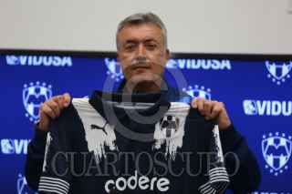 SANTIAGO, NUEVO LEÓN, 26MAYO2025.- El entrenador español Domenec Torrent fue presentado ante los medios de comunicación como nuevo Director Técnico de los Rayados del Monterrey, en el centro de entrenamiento del Club Monterrey en Santiago, Nuevo León, acompañado de directivos del Monterrey. FOTO: GABRIELA PÉREZ MONTIEL / CUARTOSCURO.COM