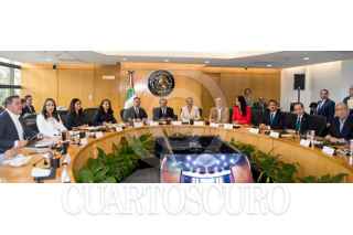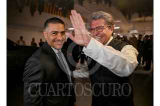 CIUDAD DE MÉXICO. 26MAYO2025.- Omar García Harfuch, titular de la secretaría de Seguridad Federal se reunió con la comisión de la Cámara de Diputados. El coordinador de la Jucopo, Ricardo Monreal Ávila lo recibió en el estacionamiento de la cámara baja. FOTO: CUARTOSCURO.COM