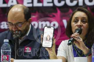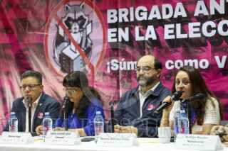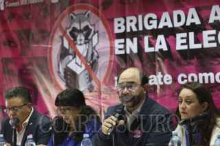 CIUDAD DE MÉXICO, 26MAYO2025.- Mariana González Torres, integrante de la organización Somos México, durante la presentación de la Brigada Antimapaches en la Elección Judicial, en la que realizaron un llamado a la ciudadanía para sumarse y participar como observadores en jornada electoral del próximo domingo y evitar cualquier irregularidad, esto a pesar de que no están de acuerdo con el proceso. En la imagen. crítica que a pesar de que la jornada electoral será en pocos días los candidatos aún se están promocionando en redes sociales, sin embargo una periodista le dijo que esta promoción era del INE y forma parte de la campaña que busca incentivar la participación de la ciudadanía. FOTO: MOISÉS PABLO/CUARTOSCURO.COM