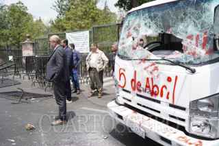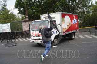 MORELIA, MICHOACÁN, 26MAYO2025. Al menos 100 habitantes de la comunidad de Arantepacua, municipio de Nahuatzen, se manifestaron esta mañana frente a las oficinas del gobierno estatal, conocidas como Casa Michoacán para exigir se cumpla con obras pendientes, principalmente la construcción de un hospital. Los inconformes llegaron a bordo de tres autobuses, algunos de ellos armados con palos y con el rostro cubierto. En tanto, elementos de la Secretaría de Seguridad Pública del estado, colocaron vallas frente al edificio gubernamental. Hubo momentos de forcejeos, pero finalmente optaron por el diálogo. En el lugar arribaron decenas de uniformados, mientras que los habitantes de Arantepacua, bloquearon el Libramiento frente a Casa Michoacán. FOTO: JUAN JOSÉ ESTRADA SERAFÍN/CUARTOSCURO.COM