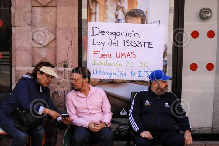ZACATECAS, ZACATECAS, 26MAYO2025.- Maestros del Sindicato Nacional de Trabajadores de la Educación sección 34 y de la Coordinadora Nacional de Trabajadores de la Educación sección 58, realizaron un bloqueo desde muy temprano en todos los bancos del estado; como parte de las acciones de movilización nacional en demanda de la abrogación de la Ley del ISSSTE del 2007. Los docentes además mantienen un plantón permanente en la Plaza de Armas y en el Congreso del Estado, hasta llegar a acuerdos con Gobierno Federal. FOTO: ADOLFO VLADIMIR /CUARTOSCURO.COM