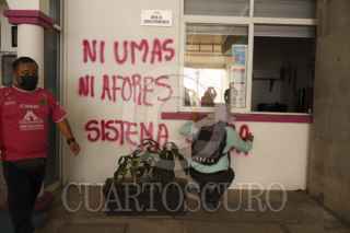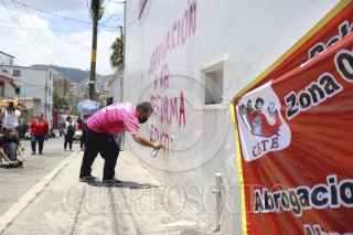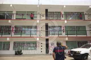 CHILPANCINGO, GUERRERO, 26MAYO2025.- Maestros de la Coordinadora Estatal de Trabajadores de la Educación en Guerrero (CETEG) irrumpieron este lunes en las oficinas del Instituto Nacional Electoral (INE) y del Instituto Electoral y de Participación Ciudadana (IEPC), como parte de una jornada de protestas contra la reforma al ISSSTE. Además de realizar destrozos, advirtieron que no permitirán la elección federal del próximo 2 de junio. Desde temprano, cientos de docentes marcharon por las principales avenidas de Chilpancingo y llegaron a la sede del IEPC, donde derribaron una reja y entraron por la fuerza. Tras exigir el desalojo del personal, realizaron pintas en paredes y ventanas. Poco después se retiraron del lugar. En declaraciones públicas, los docentes advirtieron que si sus demandas no son atendidas por el gobierno federal, encabezado por Claudia Sheinbaum, impedirán las votaciones del 2 de junio. Señalaron que las acciones de este lunes se replicaron en otros estados del país. FOTO: DASSAEV TÉLLEZ /CUARTOSCURO.COM