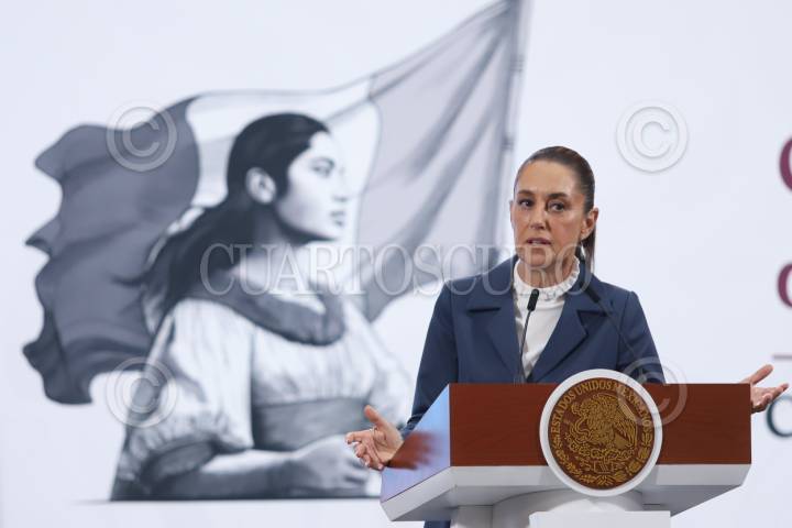 CIUDAD DE MÉXICO, 27MAYO2025.- Claudia Sheinbaum, presidenta de México, encabeza la Conferencia del Pueblo de este martes en Palacio Nacional. FOTO: DANIEL AUGUSTO/ CUARTOSCURO.COM