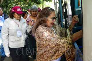 CIUDAD DE MÉXICO. 27MAYO2025.- La secretaria de turismo de la CDMX, Alejandra Frustró dio el banderazo de salida a la caravana "Colibrí de Plata", que llevará a Acapulco a decenas de adultos mayores de la Capital. El viaje durará dos semanas y cuentan con todos gastos pagados así como un grupo de médicos, enfermeras y cuidadores para hacer más placentera su estancia en el destino turístico de Guerrero. FOTO: VICTORIA VALTIERRA/CUARTOSCURO.COM