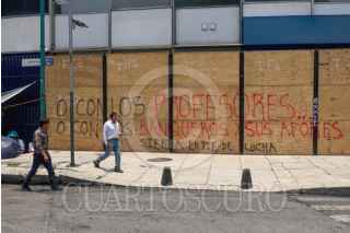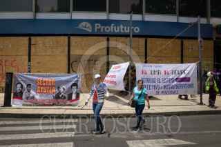 CIUDAD DE MÉXICO 27MAYO2025.- Integrantes de la Coordinadora Nacional de Trabajadores de la Educación (CNTE), realizaron un bloqueo en la entrada del Edificio de las Afores ubicadas en Reforma y calle General Prim, los inconformes, exigen un diálogo con Claudia Sheinbaum, presidenta de México, en atención a sus demandas de la abrogación de la Ley del ISSTE del 2007 y la modificación de las Reformas Educativa y Laboral. FOTO: ROGELIO MORALES CUARTOSCURO.COM