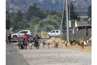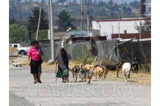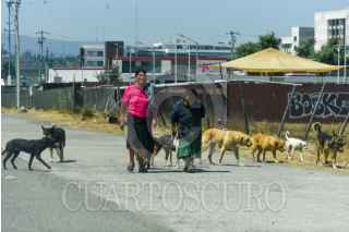 TOLUCA, ESTADO DE MÉXICO, 27 MAYO 2025.- Dos mujeres caminan por el antiguo camino a La Magdalena en Santa Cruz Atzcapotzalco en Santa Cruz, Toluca, acompañadas por una manada de perros. FOTO: CRISANTA ESPINOSA AGUILAR /CUARTOSCURO.COM