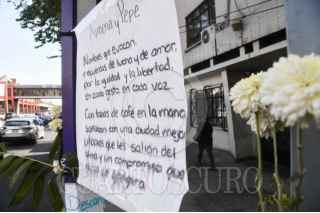 CIUDAD DE MÉXICO, 28MAYO2025.- A ocho días del asesinato de Ximena Gúzman, y José Muñoz, en el lugar del incidente permanecen dibujos, flores, veladoras y cartulinas con expresiones de duelo por los colaboradores de Clara Brugada, jefa de Gobierno. FOTO: MARIO JASSO/CUARTOSCURO.COM
