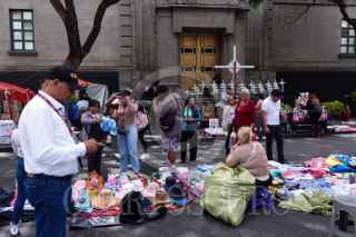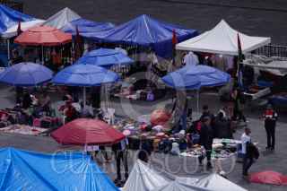 CIUDAD DE MÉXICO, 28MAYO2025.- Comerciantes de de artesanías , ropa y comida se instalaron frente a la Suprema Corte de Justicia de la Nación para vender sus productos en el paso peatonal que esta a lado del plantón de maestros de la Coordinadora Nacional de Trabajadorres de la Educación (CNTE) en el Zócalo capitalino. FOTO: GRACIELA LÓPEZ/CUARTOSCURO.COM