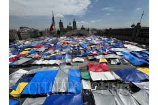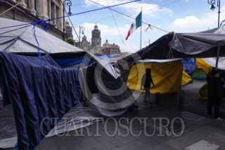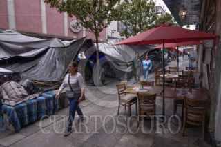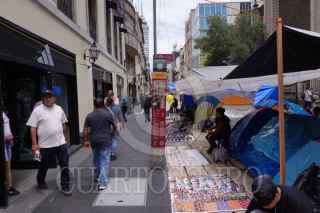CIUDAD DE MÉXICO, 28MAYO2025.- Maestros de la Coordinadora Nacional de Trabajadores de la Educación (CNTE) se mantienen en plantón en calles aledañas al Zócalo capitalino, en donde los transeúntes deben caminar por las banquetas y los comercios establecidos tienen poca actividad comercial. FOTO: GRACIELA LÓPEZ/CUARTOSCURO.COM