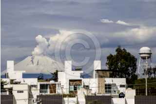 SAN LUCAS CUAHUTELULPAN, TLAXCALA, 28MAYO2025.- A pesar de las nubosidades presentes en el ambiente, esta mañana se pudo observar el volcán Popocatépetl con una de sus exhalaciones, mientras en primer plano se observa el caserío de una zona residencial de este municipio tlaxcalteca, ubicado a unos 110 kms de la CdMx. Al respecto, y de acuerdo con información publicada por la CENAPRED en su sitio oficial, informó que en las últimas 24 hrs, el volcán ha registrado 42 exhalaciones de baja intensidad en dirección noroeste, acompañadas de vapor de agua, pequeñas cantidades de ceniza y otros gases volcánicos. Así mismo indica que el semáforo de alerta volcánico se mantiene en Amarillo Fase 2. FOTO: J GUADALUPE PÉREZ/CUARTOSCURO.COM