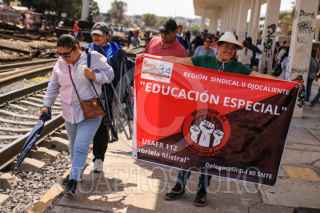 ZACATECAS, ZACATECAS, 28MAYO2025.- Maestros del Sindicato Nacional de Trabajadores de la Educación sección 34 y de la Coordinadora Nacional de Trabajadores de la Educación sección 58; realizaron acciones de protesta como parte de la lucha a nivel nacional por la abrogación de la Ley del Issste de 2007. Al rededor de las 12:00 hrs fueron convocados en la Plaza de Armas en donde mantienen un plantón permanente, para después definir los lugares para bloqueos intermitentes. Divididos por regiones, grupos de maestros mantuvieron por momentos bloqueado la entrada al Aeropuerto Internacional de Zacatecas, otros grupos también hicieron lo mismo en la estación del ferrocarril "Maquina 30-30", en el centro de la ciudad; y un grupo más mantuvo la toma del edificio de Secretaria de Finanzas en Ciudad Administrativa. FOTO: ADOLFO VLADIMIR /CUARTOSCURO.COM
