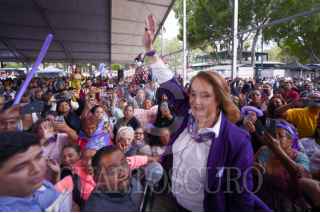 CIUDAD DE MÉXICO, 28MAYO2025.- Yazmín Esquivel, candidata a ministra de la Suprema Corte de Justicia de la Nación (SCJN), realizó su cierre de campaña junto a decenas de simpatizantes, en la Macroplaza de la alcaldía Iztapalapa. FOTO: CUARTOSCURO.COM