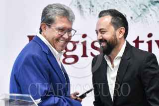 CIUDAD DE MÉXICO, 29MAYO2025.- Ricardo Monreal, diputado y coordinador del grupo parlamentario de Morena en la Cámara de Diputados, junto a Arturo Ávila, diputado y coordinador de Comunicación del grupo parlamentario de Morena, durante la conferencia "Legislativa del Pueblo" en la que se comentó y se justificó la adquisición de una una propiedad valuada en 80 millones de pesos en California por parte de Arturo Ávila. Además se reafirmó que habrá un periodo extraordinario en la Comisión Permanente del Congreso de la Unión, las leyes pendientes en la Cámara baja, en materia de seguridad pública y se incentivó la participación ciudadana en el próximo proceso electoral. FOTO: MARIO JASSO/CUARTOSCURO.COM