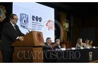 CIUDAD DE MÉXICO, 29MAYO2025.- “Celebramos este aniversario como la continuidad de una tarea en perpetuo movimiento y la reafirmación de un compromiso: no retroceder, no callar ante la violencia, no normalizar el agravio y seguir construyendo una Universidad que sea espacio de libertad, de dignidad y de justicia”, afirmó el rector de la UNAM, Leonardo Lomelí Vanegas. Al presidir la ceremonia por los 40 años de la Defensoría de los Derechos Universitarios, Igualdad y Atención a la Violencia de Género, también subrayó que esta es una instancia que se ha convertido en un pilar ético y jurídico en la defensa del tejido plural que conforma esta Universidad. Estuvo acompañado por la titular de la Defensoría, Guadalupe Barrena Nájera; la directora del Instituto de Investigaciones Jurídicas (IIJ), Mónica González Contró; y del secretario General Ejecutivo de la Asociación Nacional de Universidades e Instituciones de Educación Superior (ANUIES), Luis Armando González Placencia. FOTO: UNAM/CUARTOSCURO.COM