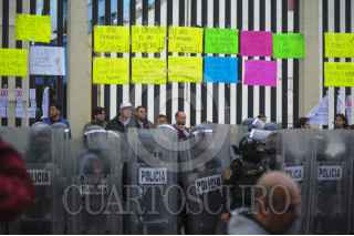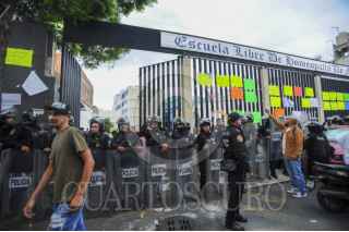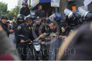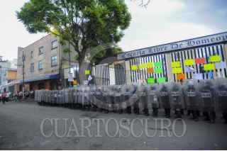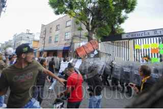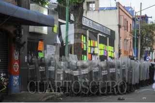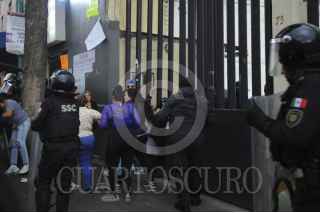CIUDAD DE MÉXICO, 29MAYO2025.- Se suscitó un conato de riña durante la protesta por el cierre de la Escuela de Homeopatía de México, ubicada en la calle de Peralvillo, alcaldía Cuauhtémoc. Estudiantes de este centro de estudios y vecino se oponen a que este inmueble sea transformado en albergue para migrantes, una medida que fue anunciada por el secretario de Gobierno, César Cravioto. La confrontación se dio cuando llegaron autoridades del Gobierno de la Ciudad de México a asegurar al inmueble, pero los vecinos se opusieron, granaderos de la SSC acordonaron la zona y desalojaron a varias personas que ya se habían colado al edificio. Los inconformes señalan que su rechazo a esta decisión es que nunca fueron consultados y temen a que la presencia de los extranjeros aumente la inseguridad en su colonia. FOTO: IKARI/CUARTOSCURO.COM