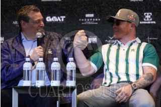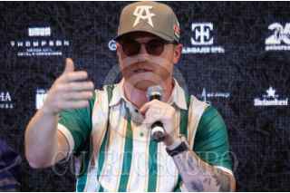 HUIXQUILUCAN, ESTADO DE MÉXICO, 30MAYO2025.- El boxeador Saúl "Canelo" Álvarez durante la conferencia con motivo de la edición 2025 del torneo de Golf "No Golf No Live" organizado por el boxeador mexicano y el campo Bosque Real que busca recaudar fondos para el apoyo a infancias y juventudes de escasos recursos. FOTO: GALO CAÑAS/CUARTOSCURO.COM