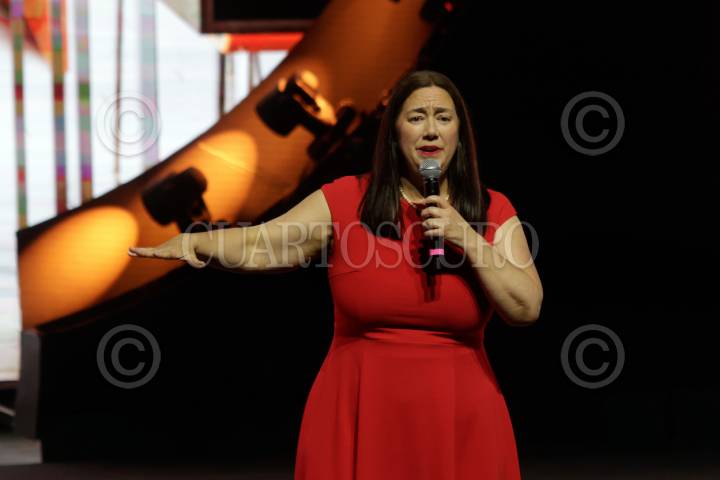 PUEBLA, PUEBLA, 30MAYO2025.- Erin Gruwell, maestra estadounidense, durante su participación en el segundo día de actividades del Festival de las Ideas llevado a cabo en el Auditorio Metropolitano de la entidad. FOTO: MIREYA NOVO/CUARTOSCURO.COM