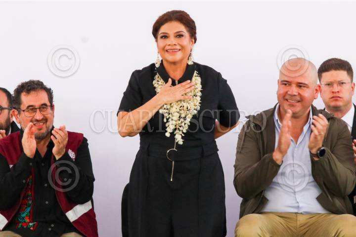 CIUDAD DE MÉXICO. 30MAYO2025.- Clara Brugada, Jefa de Gobierno, encabezó la presentación del protocolo de temporada de lluvias, en el Palacio de los Deportes. Además de los alcaldes estuvo Victor Javier Bourguett, director de Segiagua. FOTO: VICTORIA VALTIERRA/CUARTOSCURO.COM