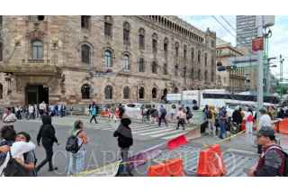CIUDAD DE MÉXICO, 30MAYO2025.- Un grupo de comerciantes feministas bloquearon eje central tras denunciar un desplazamiento desplazadas del sitio que ocupaban en la Alameda Central. FOTO: CUARTOSCURO.COM