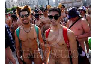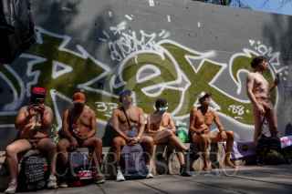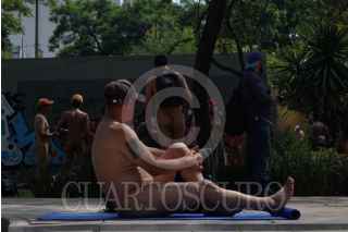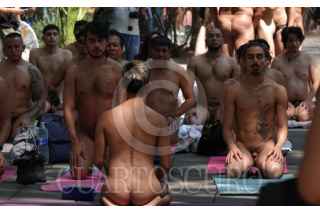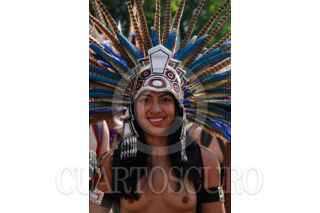 CIUDAD DE MÉXICO, 31MAYO2025.- Un mujer caracterizada con un penacho prehispánico posa durante el tercer celebración del Día al Desnudo en la Ciudad de México. La iniciativa busca visibilizar el estilo de vida nudista y eliminar tabúes frente a estas prácticas, así como acercar a la gente a todos los tipos de cuerpo y fomentar el respeto a la desnudez y que no se relacione únicamente a la cuestión sexual. FOTO: GALO CAÑAS/CUARTOSCURO.COM