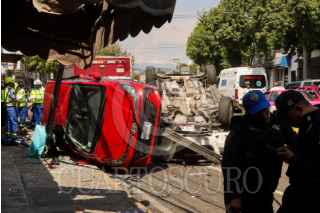 CIUDAD DE MÉXICO, 31MAYO2025.- Personal de Bomberos y ERUM atienden la volcadura en el cruce de la Av centenario y calle de Rancho Viejo colonia llano Redondo, alcaldía Álvaro Obregón. Que dejó cómo saldo al conductor de un coche rojo muerto tras ser prensado por el vehículo. FOTO: ROGELIO MORALES/CUARTOSCURO.COM