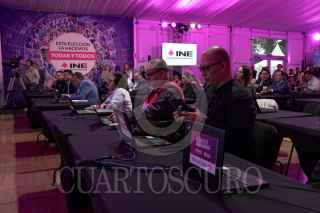 CIUDAD DE MÉXICO 31MAYO2025.- Guadalupe Taddei Zavala, consejera presidenta, acompañada de Norma Irene de la Cruz Magaña, Rita Bell López Vences, consejeras electorales y reporteros que cubren la fuente de diversos medios, encabezaron la nauguración de la Sala de Prensa, para la jornada del Proceso Electoral Extraordinario para la elección de diversos cargos del Poder Judicial de la Federación 2024-2025 en el Instituto Nacional Electoral. FOTO: ROGELIO MORALES CUARTOSCURO.COM