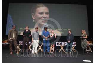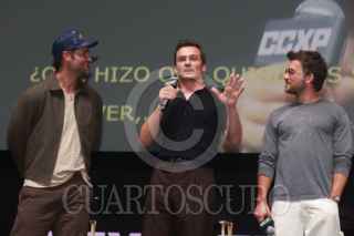 CIUDAD DE MÉXICO, CIUDAD DE MÉXICO, 31MAYO2025. Manuel García-Rulfo, Rupert Friend, Jonathan Bailey, Mahershala Ali, Scarlett Johansson y el director Gareth Edwards asisten al segundo día de actividades de la Comic Con Experience México 2025 “CCXPMX25”, promocionando la película “Jurassic World Renace”, en el Centro Banamex. FOTO: EDGAR NEGRETE LIRA/CUARTOSCURO.COM