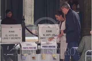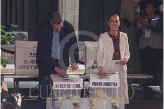 CIUDAD DE MÉXICO, 01JUNIO2025.- Claudia Sheinbaum, presidenta constitucional de los Estados Unidos Mexicanos, acompañada de su esposo José María Tarriba, emitieron su voto para las elecciones al Nuevo Poder Judicial en la Casilla Basica instalada en el Museo de Arte de la Secretaría de Hacienda y Crédito Público, en la calle de Moneda en el Centro Histórico. FOTO: GRACIELA LÓPEZ/CUARTOSCURO.COM
