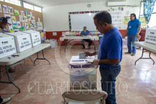 CADEREYTA JIMÉNEZ, NUEVO LEÓN, 01JUNIO2025.- Se realiza la elección inédita para emitir sufragio a quienes tendrán diferentes cargos del Poder Judicial de la Federación. De los 881 cargos de la PJF, en el estado de Nuevo León, se estará votando por 57. La afluencia de votantes ha sido poca, en su mayoría adultos mayores que tardan hasta 30 minutos en emitir su voto. FOTO: GABRIELA PÉREZ MONTIEL / CUARTOSCURO.COM